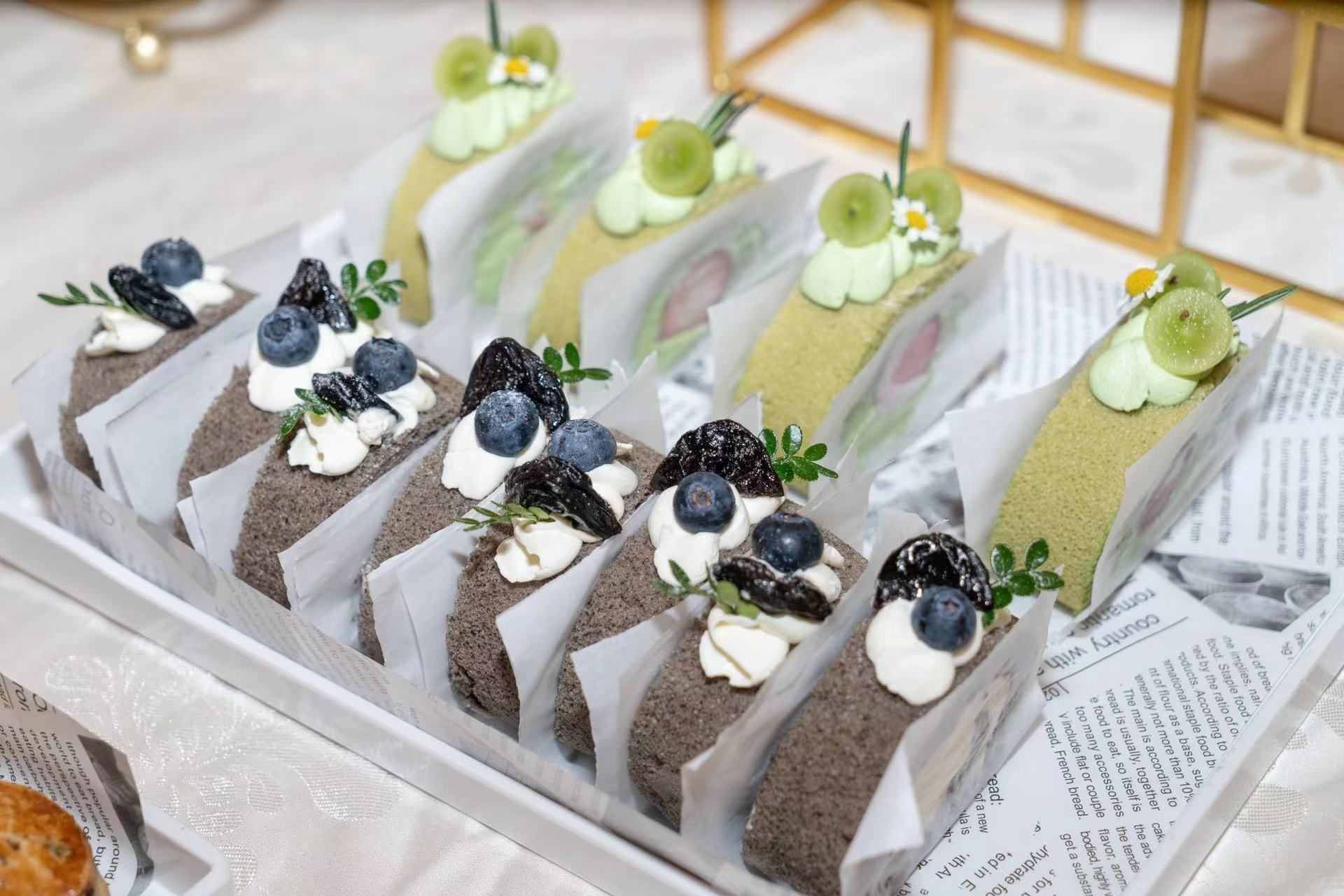 這(zhè)些甜點和飲品全部取材自我們的健康産品,Nestor果幹系列——蔓越莓幹、藍莓幹彙聚成(chéng)美味酥軟的司康,每一口都(dōu)能(néng)嘗到自然果香;Nestor超級食物系列——巴西莓粉、生可可粉、抹茶粉代替使人發(fā)胖的原料,將(jiāng)健康營養融入蛋糕卷;Bragg蘋果醋系列——0卡0熱量的蘋果醋混合清甜水果茶,爲餐後(hòu)的賓客及時(shí)解膩。